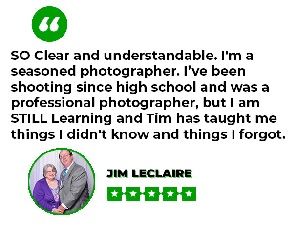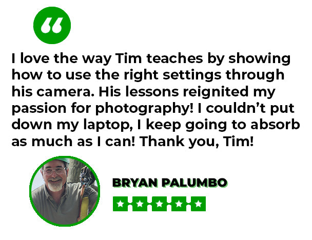 I've paid for classes before, but this is the most all-encompassing classes on the art of photography I've taken. Thanks, Tim.